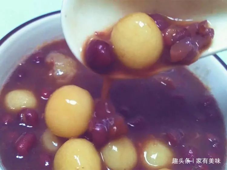 8、这样香甜适口的红豆糯米小团子就做好了,喝一口,暖暖的很贴心。