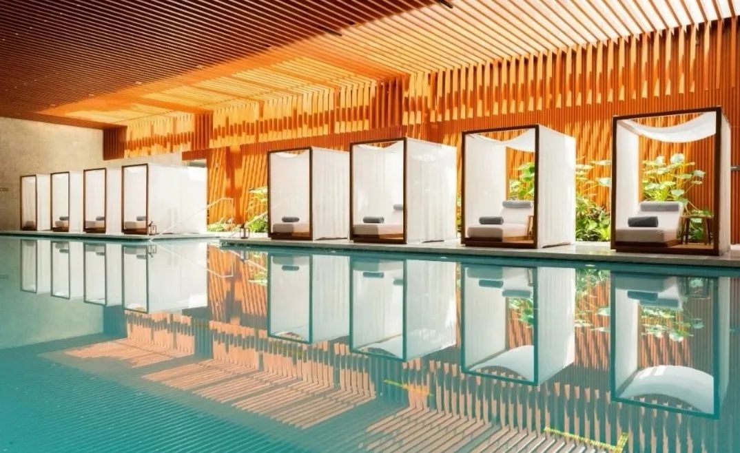 酒店配有室内恒温的无边泳池,靠窗的休憩躺椅可以享受阳光美景,无边泳池给人一种格外清澈、凉爽的感觉。