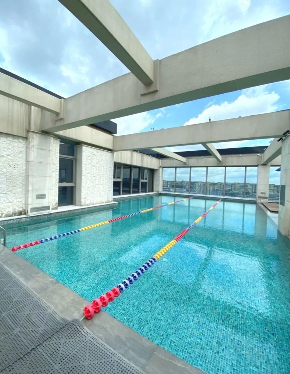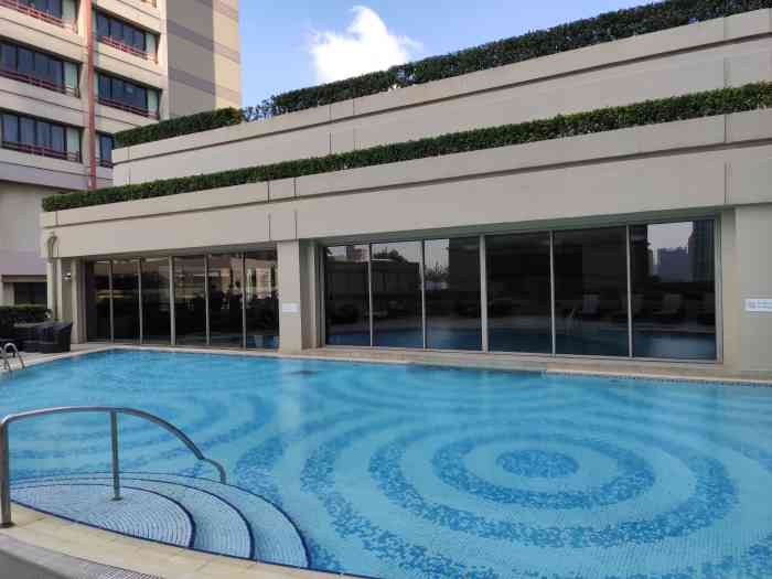 两端透明玻璃的恒温泳池简直是凹造型拍照的绝美胜地,透过一旁休息区的玻璃窗还能一览虹桥商务区的夜景,相当不错~