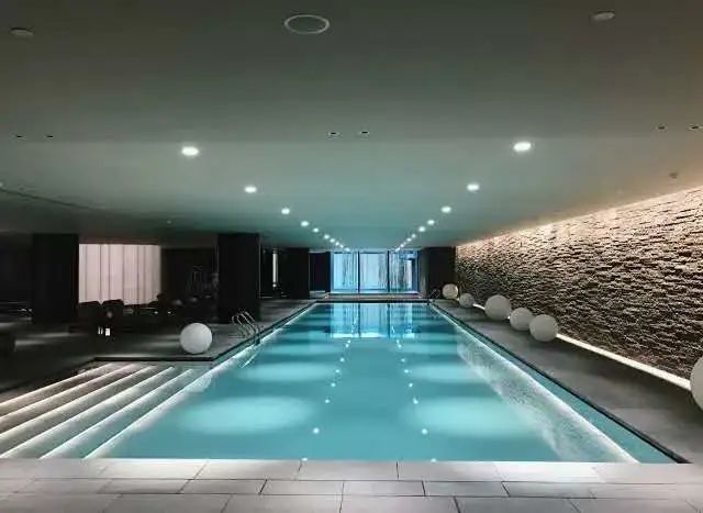 室内泳池虽然是在地下一层,但是泳池上方是全通透的玻璃窗,既能在阳光灿烂的日子里享受日光,也能在繁星点点的夜晚看漫天星星。