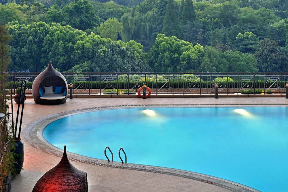 同时拥有室内和室外两个泳池。最推荐的是静隐于户外园景中的室外泳池,最宽处长达57米,能坐拥潋滟湖光和苍翠林景。