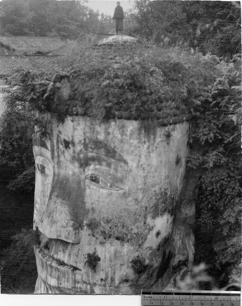 1914年,近代以来大佛的首次修缮,凌云寺僧人清理了“草丛是眉毛和胡须,树丛是头发”的大佛表面。