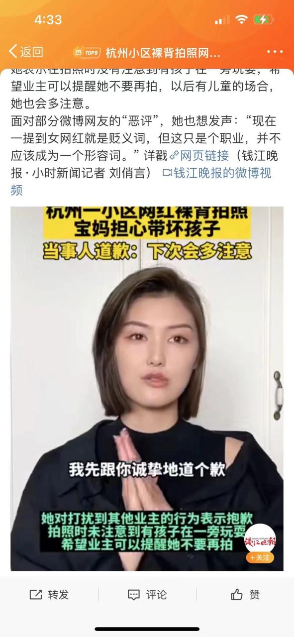 3月28日,#杭州一小区网红裸背拍照宝妈担心带坏孩子#登上热搜第一,今天病媛,女网红出来道歉想澄清骂名,“现在一提到女网红就是贬义词,但这只是个职业,并不应该成为一个形容词”,继续霸屏热搜。