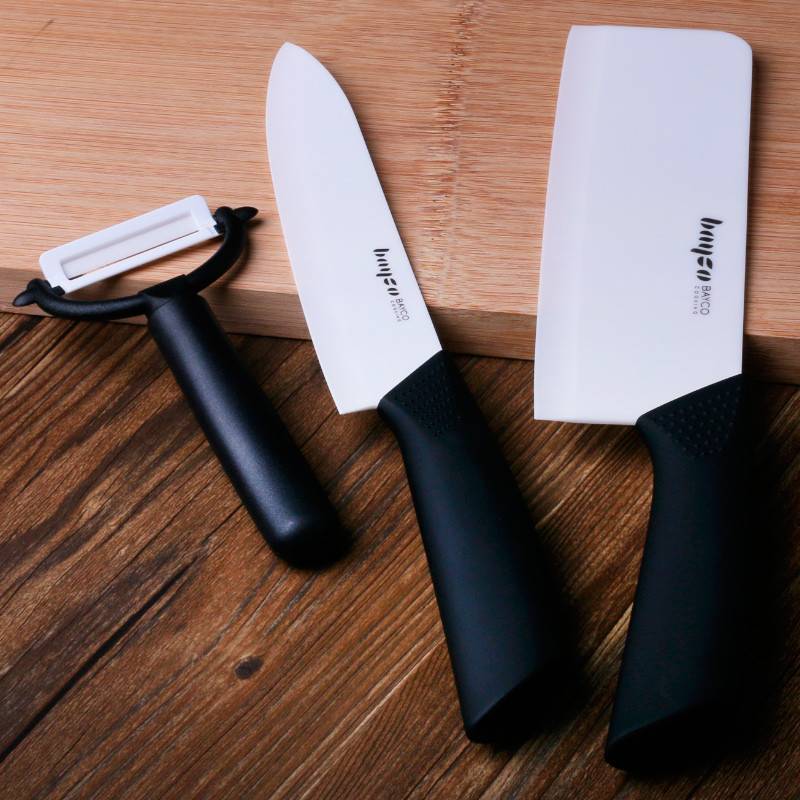 除了上述中的钢材质地的刀具,还有陶瓷刀具,陶瓷刀具是使用精密的陶瓷高压研制而成的,采用高科技的纳米技术制造而成,具有耐磨、无毛孔、不会留有污垢、还不会生锈等许多优点,他具有许多钢材质地的刀具无法比拟的优势,所以现在的欧美已将陶瓷刀具运用在手术上了,可见这样的材质用在刀具上是多么的契合。但是陶瓷的材质不能够用砍、剁等处理食物,因为陶瓷的硬度不是很高,所以最好选择陶瓷以外的刀具来处理较硬的食物。