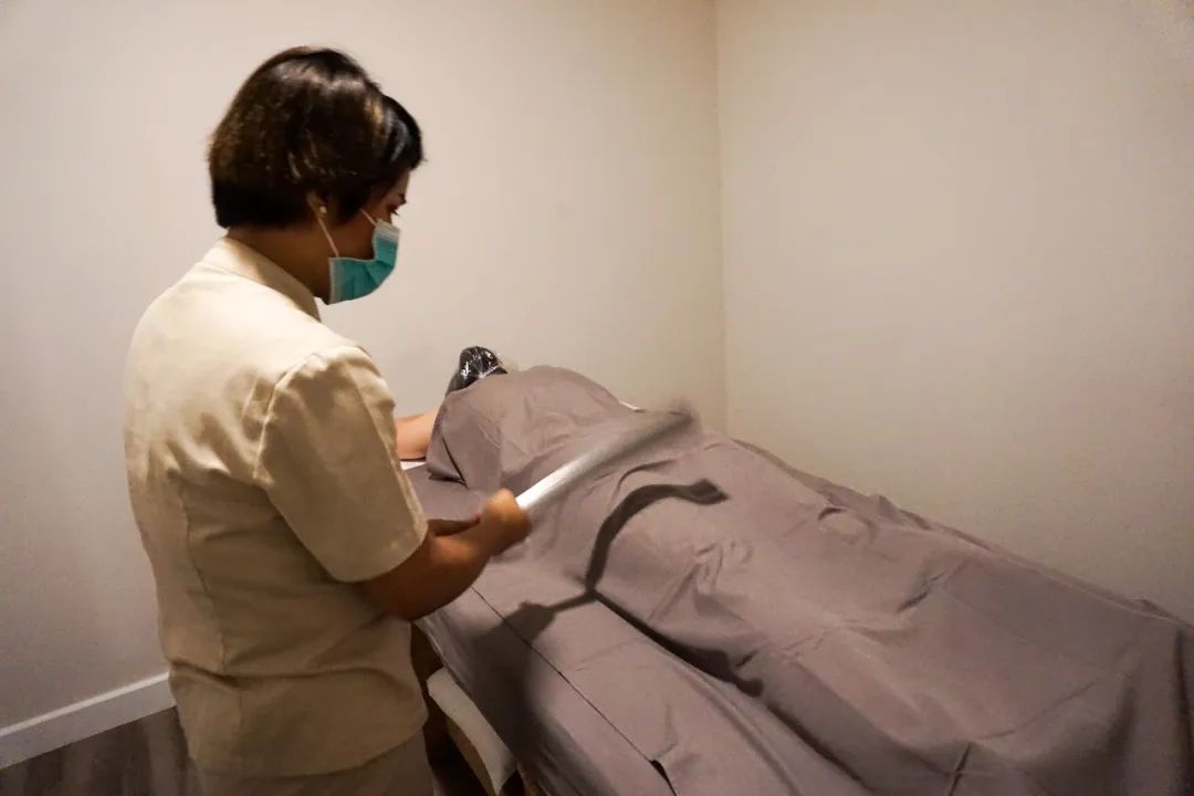 跟以往做的热油按摩不同,按摩师没有直接给我淋上加热过的按摩油。