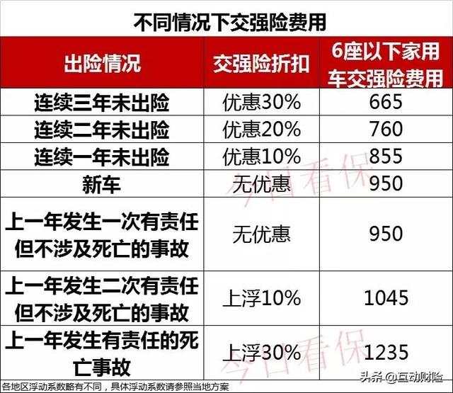 交强险是国家强制规定要购买的车险,五座家用车首年950元,第二年开始,费用会根据上一年是否有交通事故记录、交通安全违法行为等进行浮动。