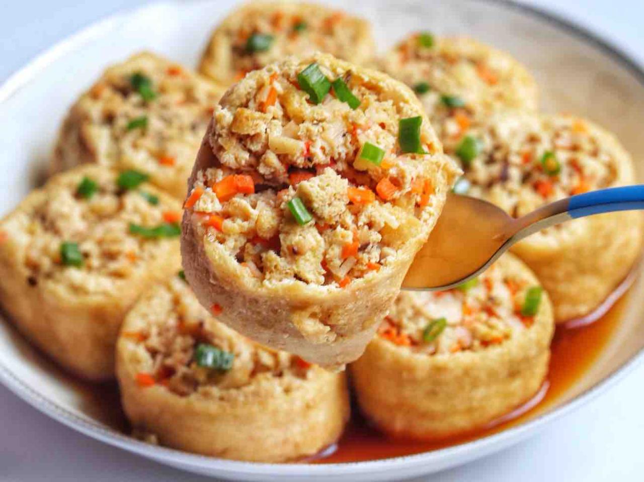 滑嫩的豆腐加上鲜香的馅料,使得一向清淡素雅的豆腐也十分有滋味。