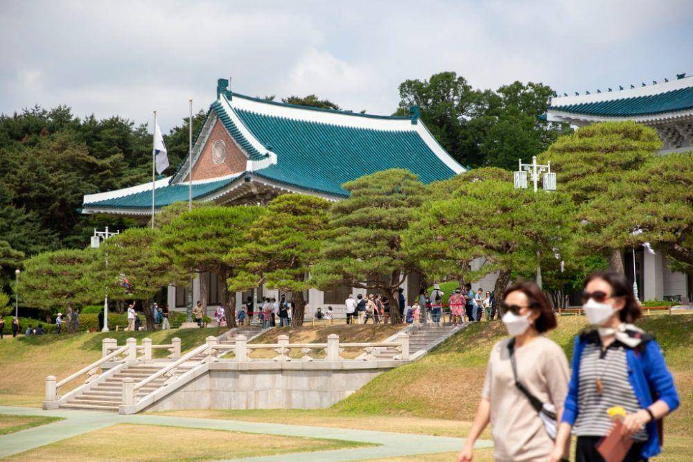 5月12日,在韩国首尔,游客参观青瓦台。新华社