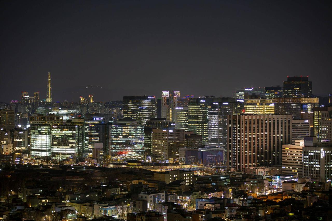 从韩国首尔景福宫北面远眺青瓦台(5月12日摄)。新华社