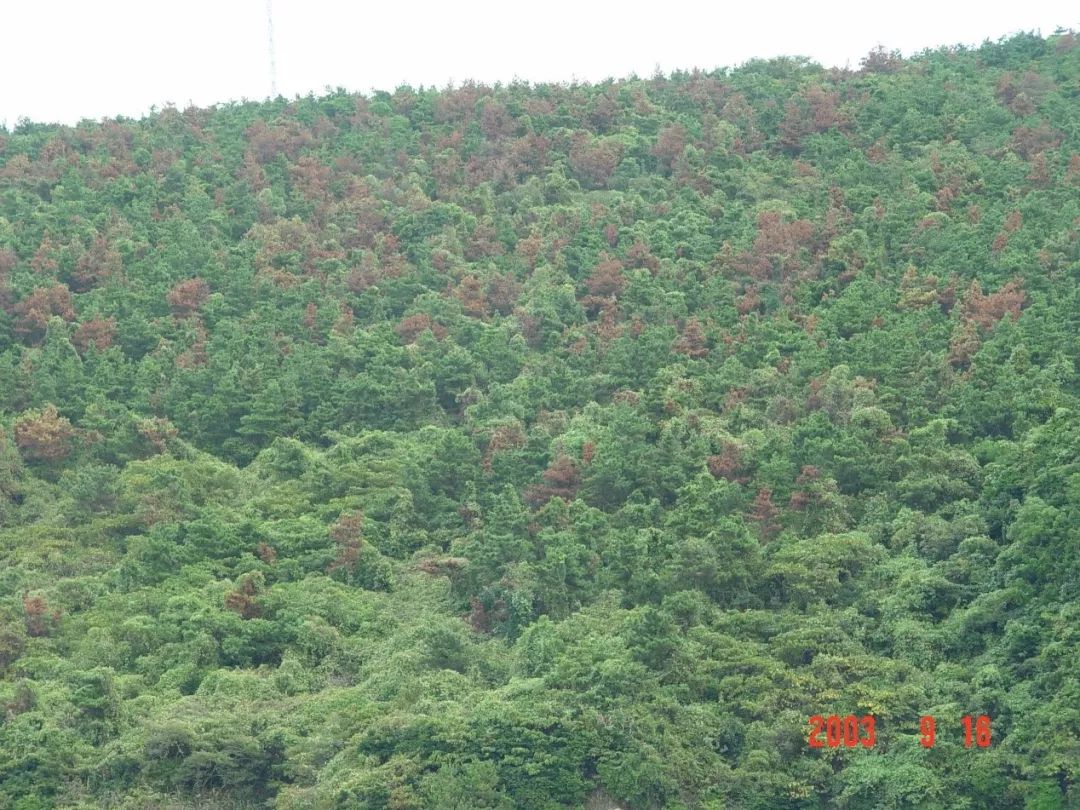 宁波某座山头成片枯死的松树 | 宁波出入境检验检疫技术中心