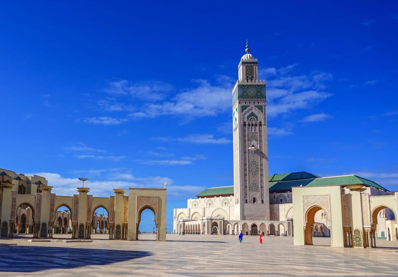 其中三分之一面积建在海上,以纪念摩洛哥的阿拉伯人祖先自海上来。整个清真寺可同时容纳10万人祈祷,是世界第三大清真寺,排在沙特阿拉伯的麦加和麦地那清真寺之后。