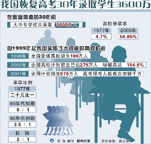 1977年的冬天,570万人怀揣积压了11年的大学梦走进考场,拿起笔在印《毛选》的试卷纸上书写自己的理想,竞争那27万个上大学的机会。如今随着高校几次扩招,上大学已不再是难事。同时通过不断的改革,高考也在不断自我完善,让更多人找到了适合自己的发展成才之路。回顾恢复高考42年,有一点始终未曾改变:高考所代表的公平、质量至今仍是人们不懈追求的价值观。千万人通过高考改变了自身命运,也改变了国家命运。