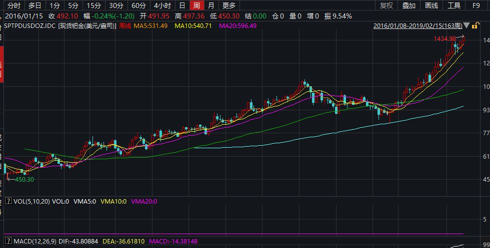 2019年开年不到两月,现货钯金价格已涨超10%。