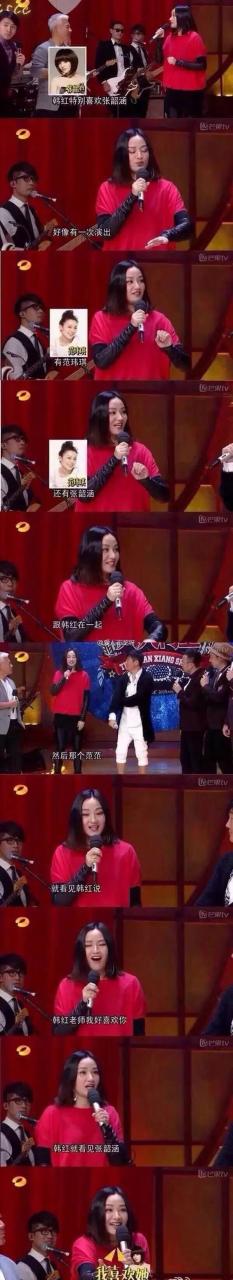 耿直的韩红非常喜欢她,有一次活动,范玮琪和韩红和张韶涵都在,范玮琪向韩红说自己很喜欢韩红,韩红甩了一句:“我喜欢张韶涵”。