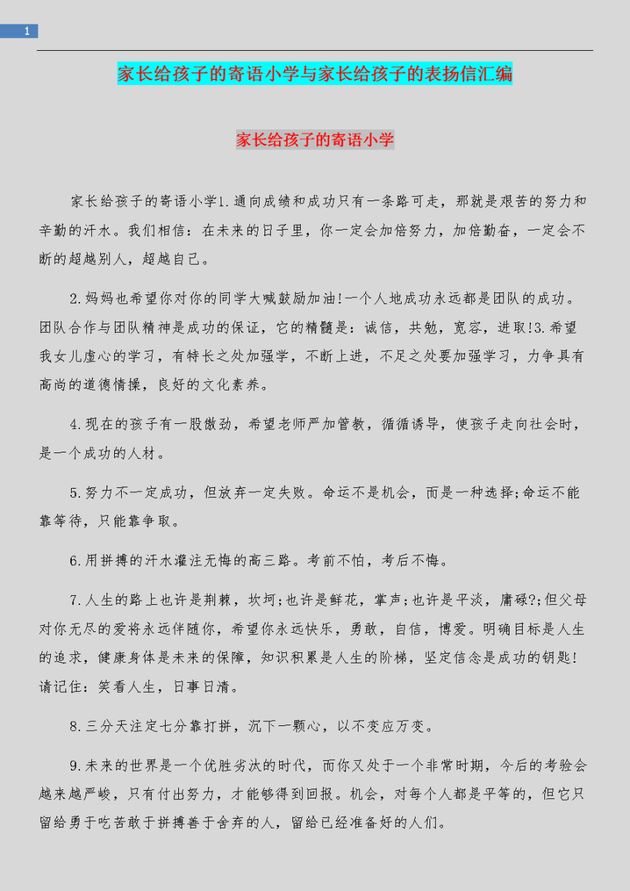 孩子是我们老师的,更是我们家长的。让我们携起手来,用最科学、最有效的方法,共同教育好我们的孩子。