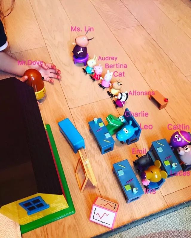我女儿在排演自己班级里生活,每一个人物代表班级里的同学和老师。
