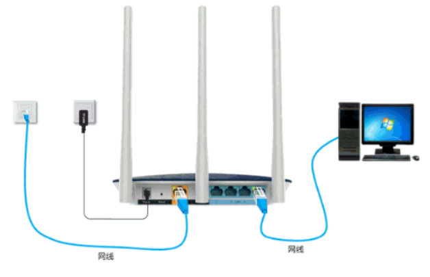 将长城宽带提供的网线连接到路由器的WAN口,电脑连接到路由器的1~4任意一个LAN口。请按照下图方式连接:
