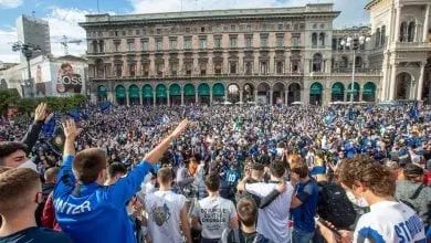 在为Atalanta-Sassuolo 鸣笛的最后一声中,一些国际米兰的球迷已经在大教堂广场(Piazza Duomo)上摆满了旗帜:只花了几分钟时间填满了广场,Nerazzurri 再次庆祝意甲联赛(Scudeto),这是他们时隔11年之后再度夺冠。在Agenzia Fotogramma,Ansa和Agf的图像中,国际米兰的故事,还有许多球迷和与任何反感染规则背道而驰的聚会:Duomo大教堂和Castello广场,里面挤满了攀登纪念碑的人。在喷泉中洗澡,在大街上旋转木马,在圣西罗城门外到达的歌迷以及在宵禁后仍然带着烟雾弹在街上喧闹的人群。