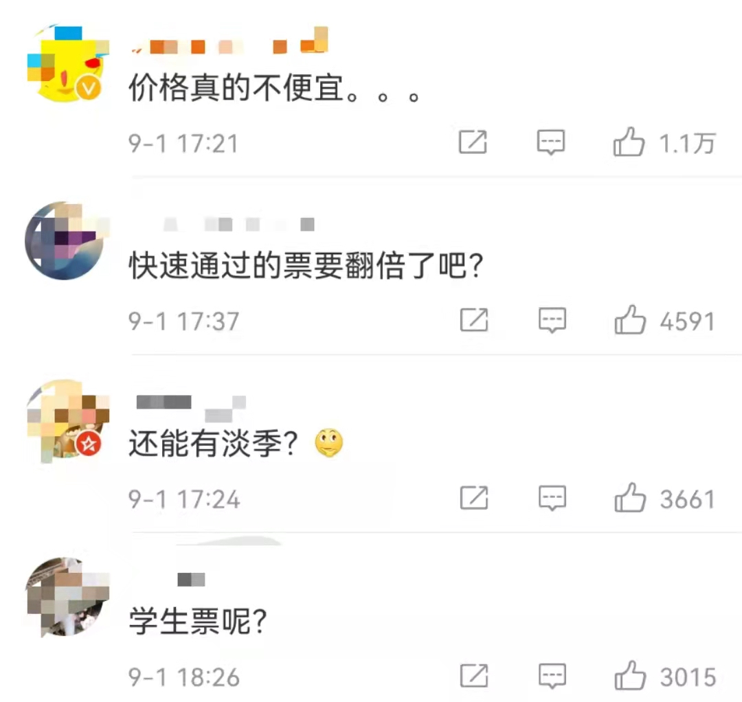 (除规模较小的新加坡环球影城外,以上环球影城的票价均随日期浮动)
