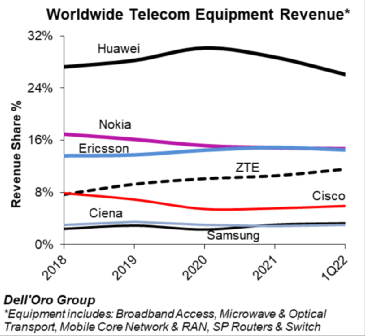 华为、中兴在欧洲和北美市场的寸步难行,就给了诺基亚和爱立信绝佳的追赶机会。