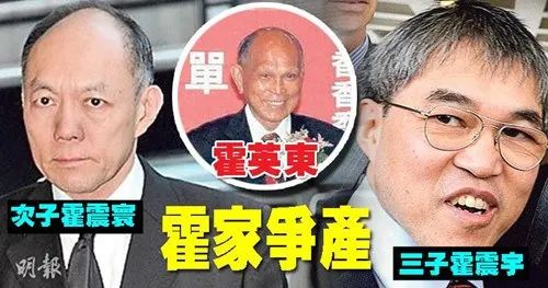 2011年,长房三子霍震宇起诉长房次子霍震寰私吞遗产,双方在2012年达成和解;