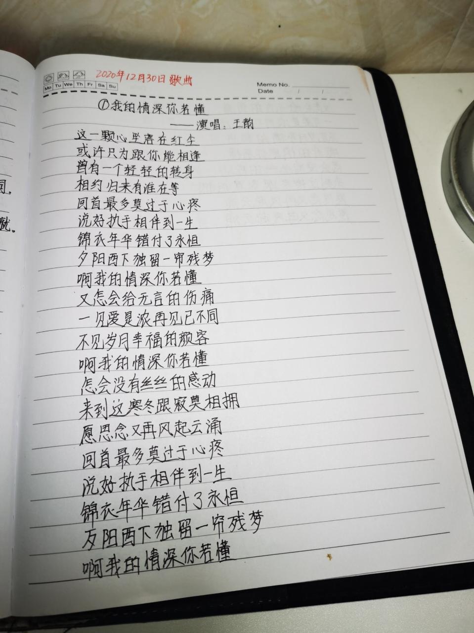 首先,不是所有的本子都配被写上偶像的歌词的。它必须是文具店里装帧最精美,封皮最狂拽酷炫的那一本。