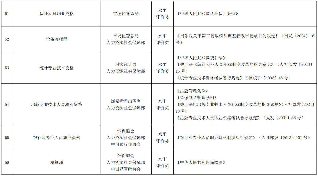 国家按照规定的条件和程序将职业资格纳入国家职业资格目录,实行清单式管理,目录之外一律不得许可和认定职业资格,目录之内除准入类职业资格外一律不得与就业创业挂钩;目录接受社会监督,保持相对稳定,实行动态调整。设置准入类职业资格,其所涉职业(工种)必须关系公共利益或涉及国家安全、公共安全、人身健康、生命财产安全,且必须有法律法规或国务院决定作为依据;设置水平评价类职业资格,其所涉职业(工种)应具有较强的专业性和社会通用性,技术技能要求较高,行业管理和人才队伍建设确实需要。今后职业资格设置、取消及纳入、退出目录,须由人力资源社会保障部会同国务院有关部门组织专家进行评估论证、新设职业资格应当遵守《国务院关于严格控制新设行政许可的通知》规定并广泛听取社会意见后,按程序报经国务院批准。