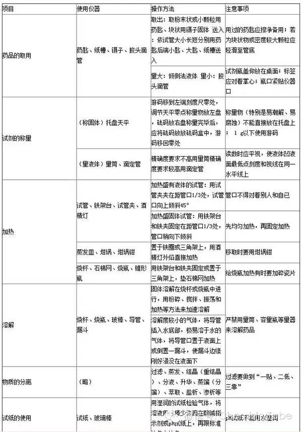 锦囊六:化学实验中仪器的操作及注意事项汇总