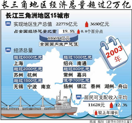 一市三省合计,长三角去年实现生产总值29.03万亿元,约占全国GDP总量的24%;与上年相比,合计量增加1.42万亿元舟山是几线城市,接近无锡去年的GDP实绩(14851亿元)。