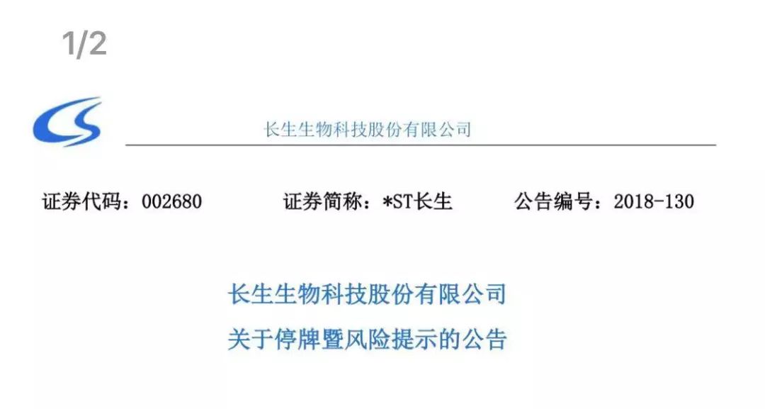 与此同时,*ST长生也于16日晚间发布公告,根据相关规定,因长春长生的违法行为,公司存在被暂停上市或终止上市的风险: