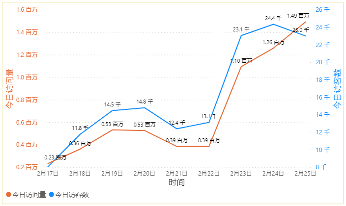 图1开学当天可视化平台日访问量和日访客数