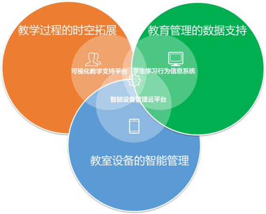 2014年底,学校信息与网络中心提出了“教室设备智能管理、教学过程时空拓展、教育管理数据支持”的“三教模式”建设思路(图3)。