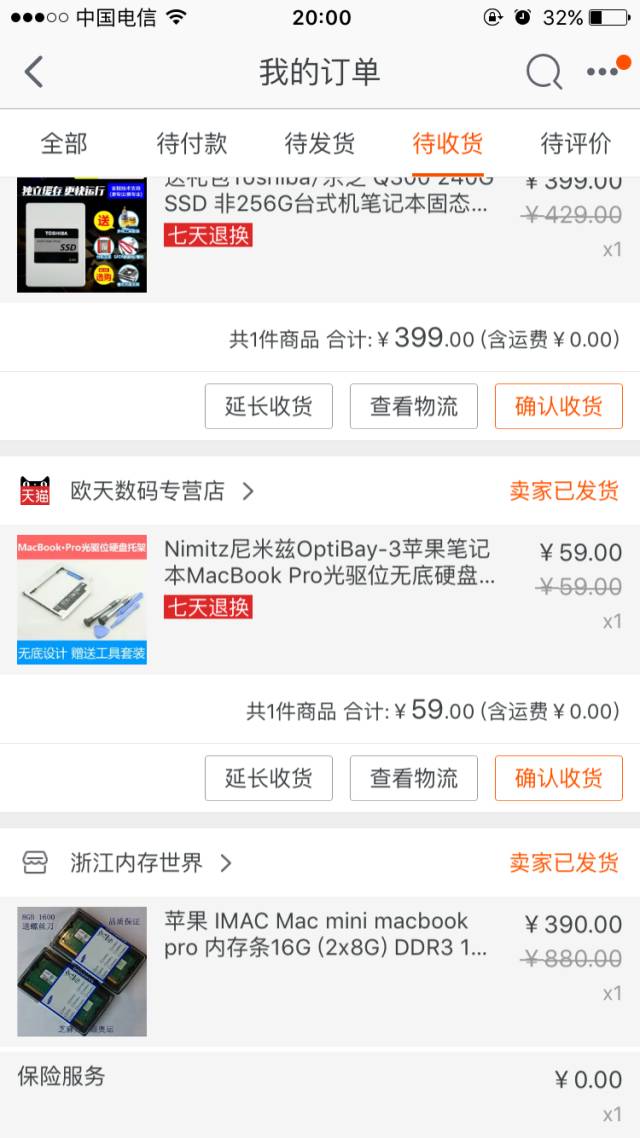 当天下午下单, 第二天上午快递就陆续都到了, 这里不得不秀一下江浙沪的优越感啊