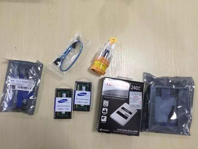 话不多说,说干就干。 笔者从某宝购置了一块东芝的240G固态硬盘, 这里需要注意,macbook如果单纯只将原机身的机械硬盘换掉的话,是不需要任何辅助设备的, 如果是想加装在光驱位的话, 还需要购置一块硬盘架。 这里笔者采用的是第二种方案, 相信大多数人也会采用这种方案, 毕竟光驱使用率几乎位零, 笔者这里妄自断言 , 光驱在不久的将来也一定会像当年的软驱一样,消失在历史的长河中。 (哦这里一不小心暴露了笔者的年龄- -)