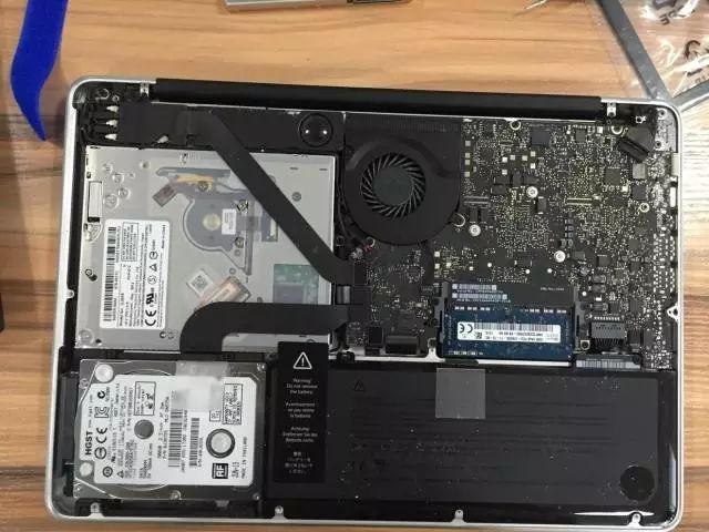 接下来小心的拆掉 mac上原配的光驱,注意首先抠掉连接在主板上的数据线(一根是硬盘的,一根是光驱的,建议都抠掉),然后拆掉固定光驱的螺丝,注意扬声器部分的螺丝也需要拆掉并且将扬声器取下来才能顺利取下光驱。这里需要注意扬声器下方还有一颗隐秘的螺丝固定着光驱,不太好拧加装固态硬盘需要重新装系统吗,一定要小心。