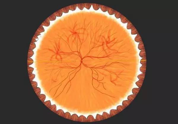 内层为视网膜,是一层透明的膜,也是视觉形成的神经信息传递的第一站。具有很精细的网络结构及丰富的代谢和生理功能。 视网膜的视轴正对终点为黄斑中心凹。黄斑区是视网膜上视觉最敏锐的特殊区域,直径约1-3mm,其中央为一小凹,即中心凹。黄斑鼻侧约3mm处有一直径为1.5mm的淡红色区,为视盘,亦称视乳头,是视网膜上视觉纤维汇集向视觉中枢传递的出眼球部位,无感光细胞,故视野上呈现为固有的暗区,称生理盲点。