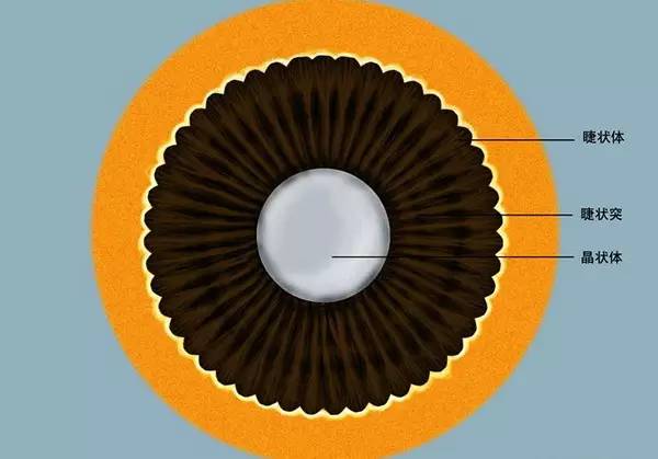 中层又称葡萄膜,色素膜,具有丰富的色素和血管眼球的结构图,包括虹膜、睫状体和脉络膜三部分。虹膜:呈环圆形,在葡萄膜的最前部分,位于晶体前,中央有一2.5-4mm的圆孔,称瞳孔。睫状体前接虹膜根部,后接脉络膜,外侧为巩膜,内侧则通过悬韧带与晶体赤道部相连。脉络膜位于巩膜和视网膜之间。脉络膜的血循环营养视网膜外层,其含有的丰富色素起遮光暗房作用。