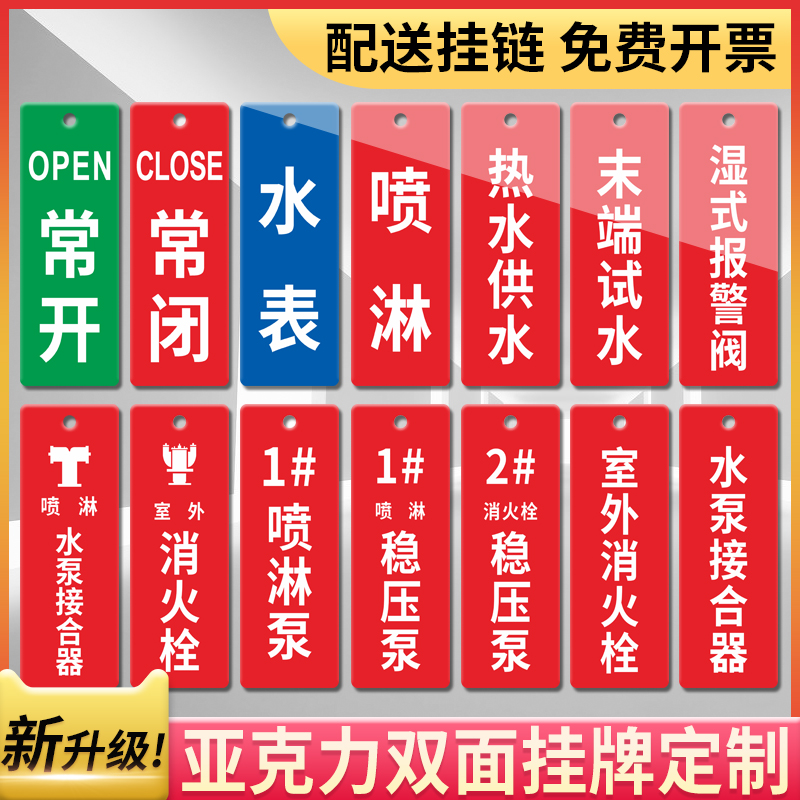 设备标识一般按系统分为:电梯系统、消防系统、给排水系统、锅炉供热系统、空调制冷系统、变配电系统、安全监控系统、停车场管理系统、卫视接受系统、电话电视系统等。该类标识主要为了表明设备状态、功能、设备编号、技术参数及使用要求。