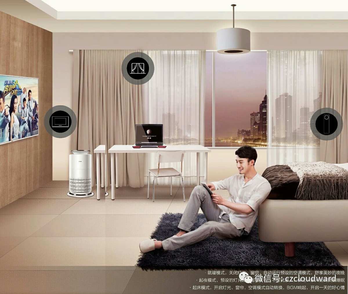 4) 米家的首页是最简单的,除了显示设备列表就显示了一小部分的广告区域,为了方便用户操作,可支持创建全屋控制中心,作为新首页聚焦在设备功能使用和场景快捷操作上,相当于手机中的集成控制面板。
