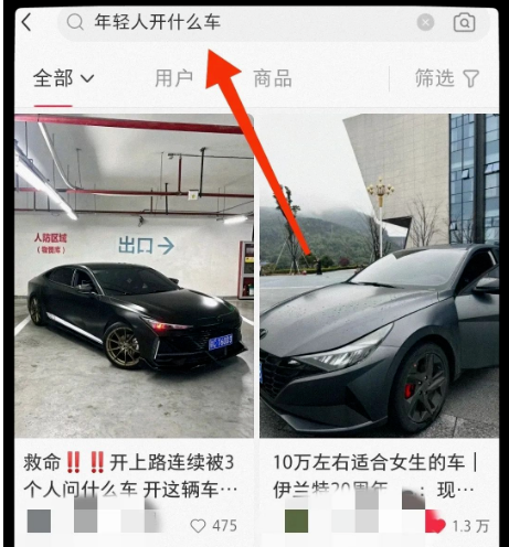 以年轻人开什么车的话题为例。让我给你演示一下。打开小红书,直接搜索标题,找到一个点赞高的帖子,将文案和图片保存在里面。小红书上的文案和图片不能直接保存。