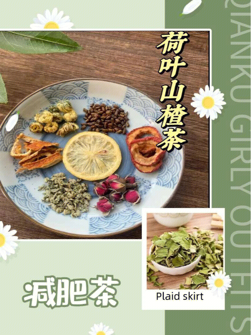 1.山楂荷叶茶:原材料:干荷叶适量,山楂干少许;做法:干荷叶洗净撕碎,沥干水分备用;山楂干洗净备用;山楂干、荷叶碎放入杯中,倒入沸水冲泡,加盖焖制15分钟即可。饭前喝一杯,减肥效果非常好哦!