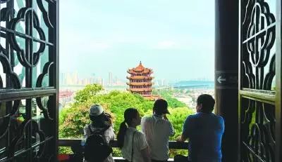 晨光洒在黄鹤楼的瓦片上,如琉璃般闪闪发亮,鸽子飞过天空叫醒清晨,徐徐微风吹得人好不惬意。4日上午6点半,40余名摄影爱好者登上白云阁,拍摄晨光中的黄鹤楼,为千古名楼定格最美“素颜照”。