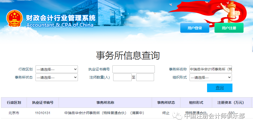 财政会计行业管理系统信息显示,中瑞岳华会计师事务所(特殊普通合伙)目前已在清算状态。