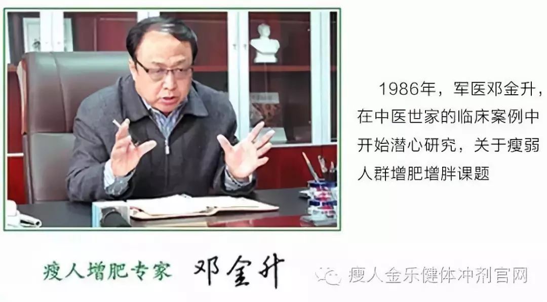 1998年,老军医 邓金升 成功研发了我国首个瘦人增肥增胖产品 —瘦人金乐健体冲剂。