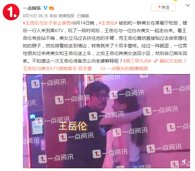 先给没吃到瓜的朋友补补课,周末有媒体曝光了一组照片,是王岳伦和朋友在KTV玩,他和一位白衣女子一起走出包厢,看上去喝了不少酒,俩人举止亲密。