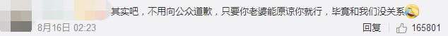 “不用给网友道歉,你老婆原谅你就行”、“做不了好丈夫,至少做个好爸爸”、“想想孩子,给孩子做个好榜样吧”、“希望你能改正”…