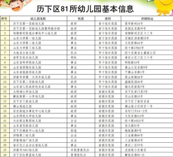历下区华尊幼儿园为历下区保利华庭幼儿园分园,是隶属于历下区教育和体育局的公办园,共有六个教学班。幼儿园秉承“让爱和我们一起成长”的办园理念,以“游戏点亮孩子快乐童年”为初衷济南幼儿园,形成“回归自然 顺应天性”的园所文化,以“育和乐之人,行和雅之教,办和美之园”为办园目标,幼儿园被列为全国幼儿自然生态教育特色课程实验幼儿园。