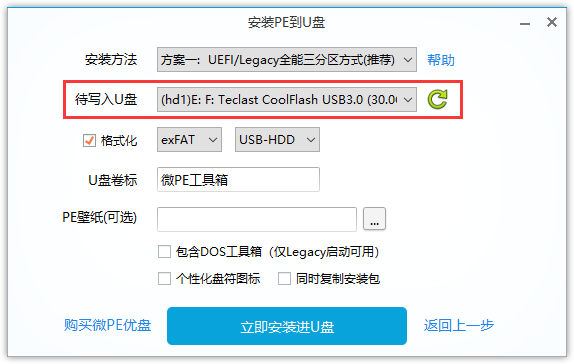 3、插入你的 U 盘如何破解电脑开机秘码,可以选择不同的方案,选择默认即可。