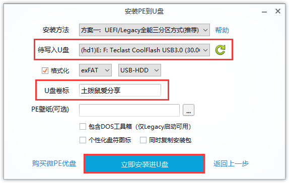 5、另外,U盘卷标可以自定义更改(就是你的 U 盘名称)。