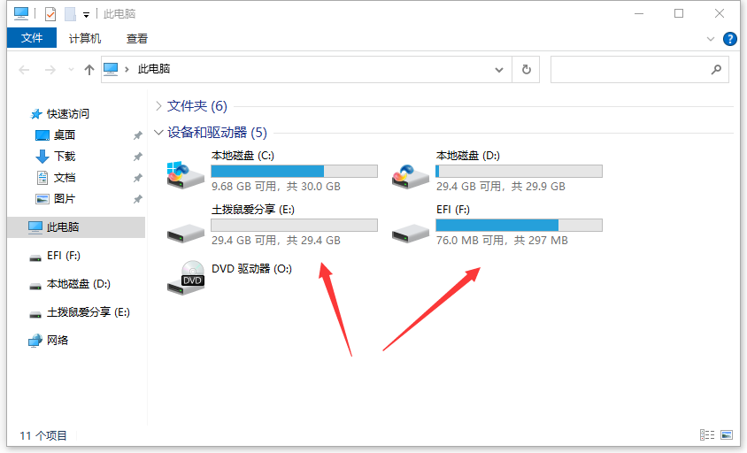 8、制作完成后,打开 – 我的计算机,可以看到 U 盘名称(之前设置的);双击打开后发现什么都没有,不用担心 ~ 这是正常的!